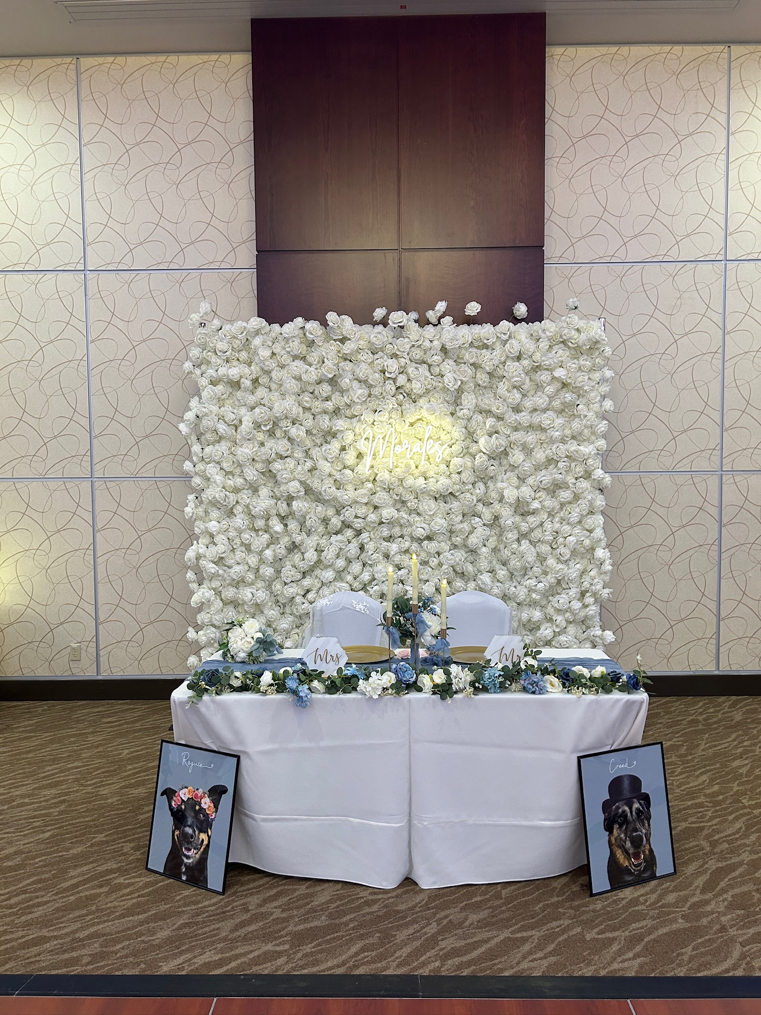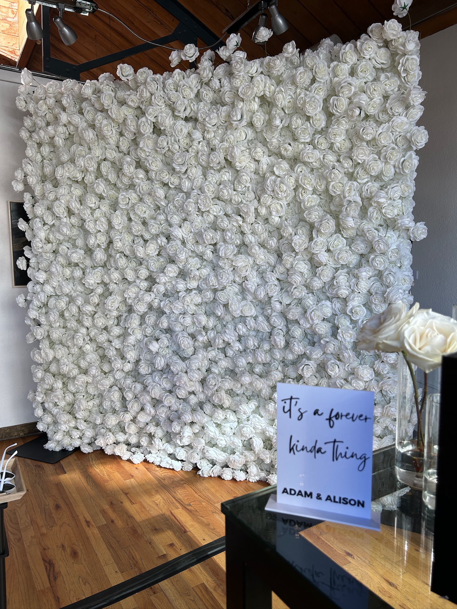 Perfect for weddings, ceremonies, receptions, engagement parties, bridal showers, milestone celebrations, and upscale corporate events, this floral wall provides a polished focal point that photographs beautifully and elevates any space.